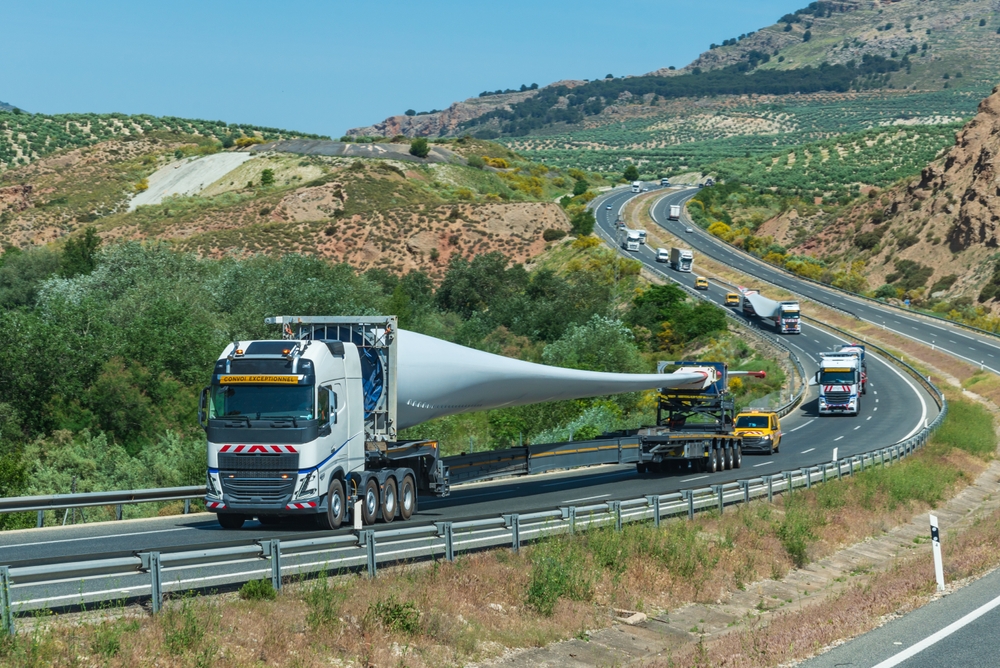 The new trucks will now attach turbine blades to hydraulically operated adapters that can manipulate the blade around tight corners and over vegetation, eliminating the need for resting turbine blades flat on massive trailers and the need for large sweeping roads to accommodate them.